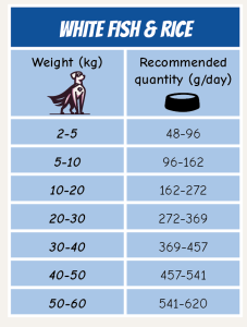 Jokainen koira on yksilöllinen, joten todellinen ruokamäärä voi vaihdella koiran iän ja aktiivisuuden mukaan. Varmista, että koirallasi on aina saatavilla raikasta vettä. Säilytä kuivassa ja viileässä paikassa. Parasta ennen/erä: katso pussin alareunasta.